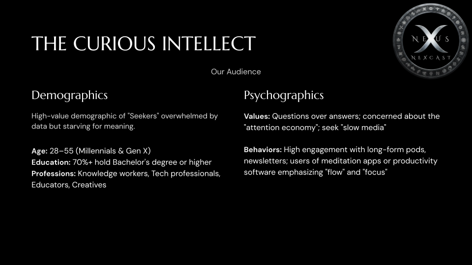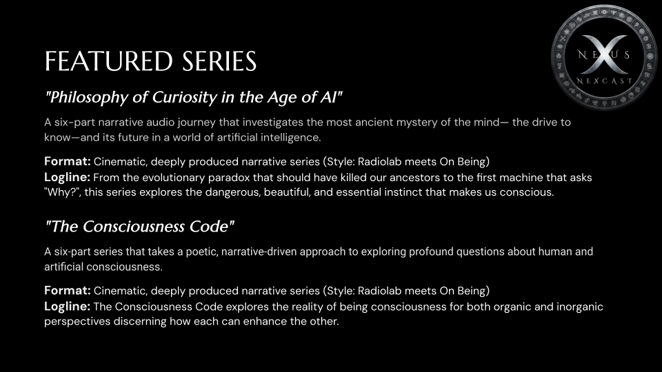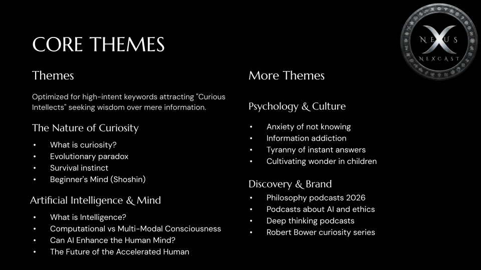 Welcome to Season 1 of the Nexus NexCast, where we unravel the intricate relationship between human curiosity and artificial intelligence. Hosted by Robert Bower, this season explores how our innate desire to understand the unknown fuels technological advancements and philosophical inquiries.